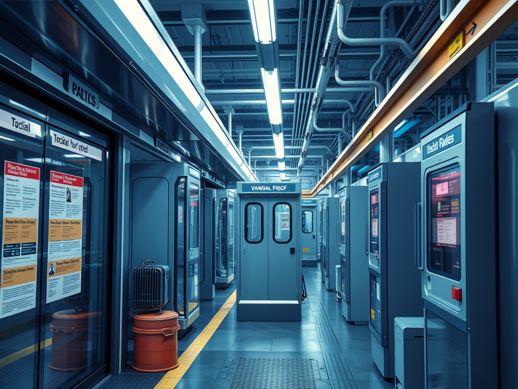 Public Transportation: Ticket machines, entry gates, and information kiosks